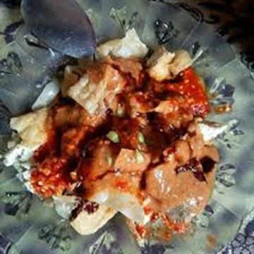 5.Goreng tahu dan kulit pangsit hingga kuning kecoklatan, sajikan bersama saus kacang dan jeruk limau.